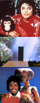 According to reports, the singer 'taught the chimpanzee how to moonwalk'. I remind you again of the monolith's intervention in 2001: A Space Odyssey, where the appearance of a mysterious black monolith appears to trigger human evolution, ultimately taking man to the moon and beyond - i.e. We might argue that the monolith 'teaches chimps how to moonwalk'.